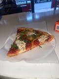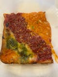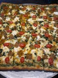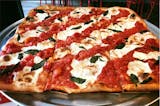 Thin and crispy square crust topped with plum tomato and basil and mozzarella.