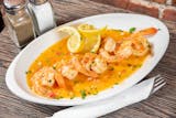 Jumbo shrimp topped with seasoned white wine, breadcrumbs and lemon sauce.