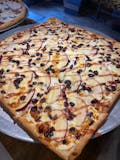 Mozzarella base, chunks of chicken, topped off with BBQ sauce.