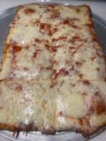 Thick squared crust with tomato sauce topped off with mozzarella cheese.